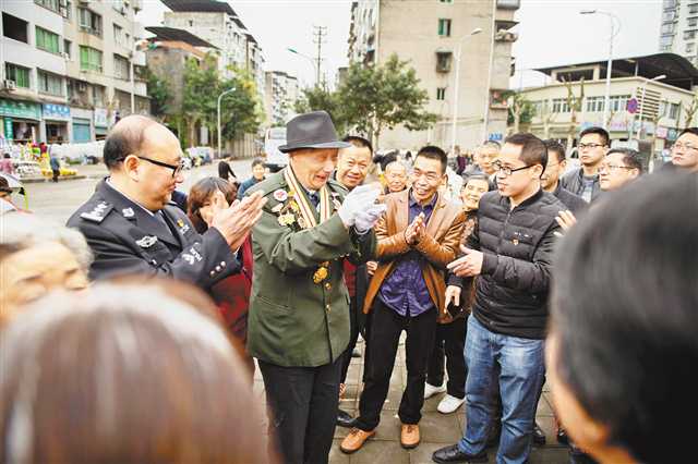 四月三日,墊江縣烈士陵園,渠吉堂老人與群眾交流。首席記者 謝智強 攝