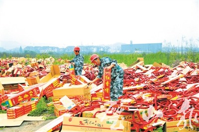 4月17日,區公安局治安支隊聯合區應急局,在青杠街道棕樹村空置工地集中銷毀2020年春節期間收繳的1000余件非法煙花爆竹。