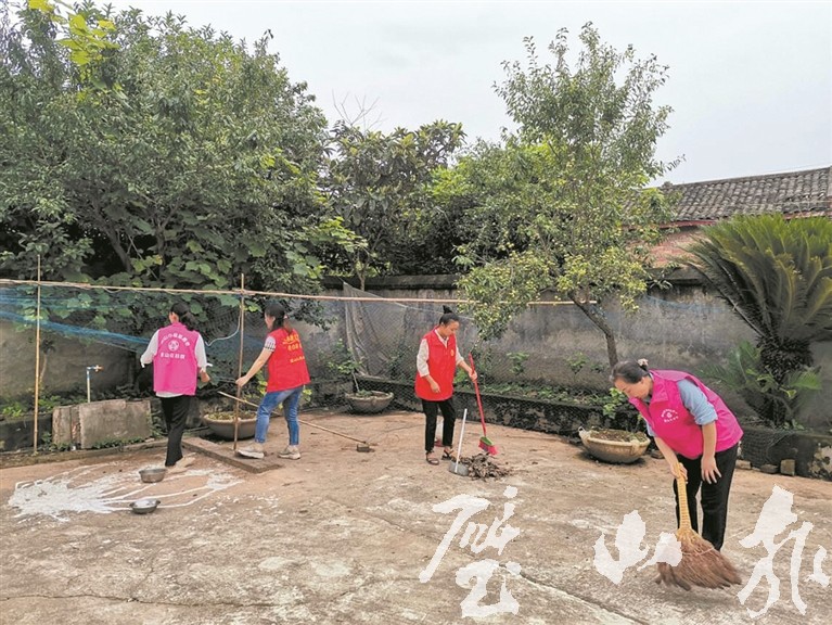 活動中,巾幗志愿者充分發揮“半邊天”作用,手拿掃帚、撮箕等工具,對村居院落各類垃圾進行全面清掃,勸導村民規范養殖家禽。同時,巾幗志愿者還向附近村民宣傳人居環境整治的重要性,倡導大家養成良好的家庭衛生習慣,做到生活污水不亂排亂放,房前屋后無衛生死角、干凈整潔,日常生產生活物品堆放規范。