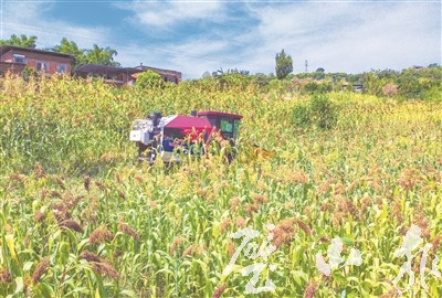 近日,璧泉街道鷹嘴社區(qū)股份合作社的高粱熟了,一串串深褐色的高粱穗沉甸甸掛在桿頭,收割機(jī)在高粱地里來回穿梭,一派繁忙的秋收景象。