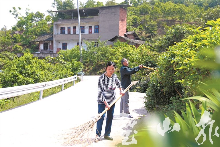 為了讓村民們養(yǎng)成良好的衛(wèi)生習(xí)慣,彭定財除了定期宣傳環(huán)保生活理念,還以身作則,和妻子帶頭清掃公路旁的垃圾,修剪樹木,甚至上門為衛(wèi)生習(xí)慣不好的村民打掃庭院。