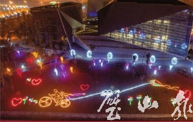2月11日,區文化藝術中心,時尚的迎春燈飾營造出夢幻般的視覺效果。