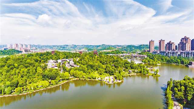 7月28日,藍(lán)天白云下景色秀麗的璧山區(qū)秀湖公園。記者 齊嵐森 攝