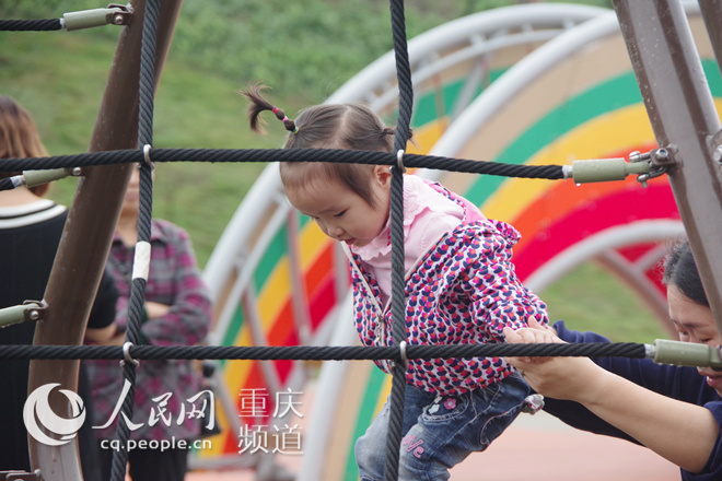 璧山楓香湖兒童公園里游玩無動力游樂設施的兒童。李力 攝