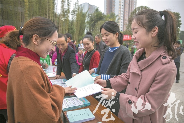 扶貧工作人員向市民發放扶貧宣傳資料。