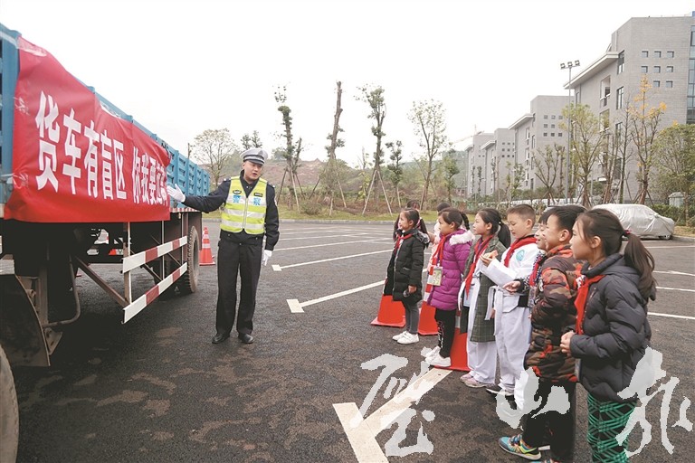 “小朋友們,車輛是有盲區的。如果在沒有大人的帶領下,盡量不要到車輛的一米范圍內。”活動現場,來自區交巡警支隊的民警為御湖小學的同學們上了一堂交通安全知識課,并邀請學生和家長上車實際體驗汽車盲區,講解學生、家長、駕駛員應該注意的問題。