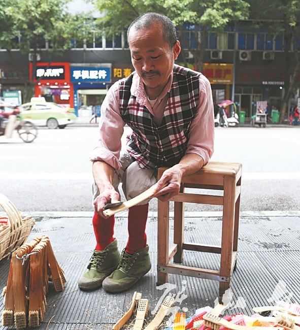 “與其接受別人的照顧施舍,不如自己做一些力所能及的事情,自食其力。”12月3日,在璧渝路重長司車站附近,記者看到倚靠在凳子上低頭忙活的劉興德,他一邊打磨著手上的鬢毛刷,一邊笑著說道。