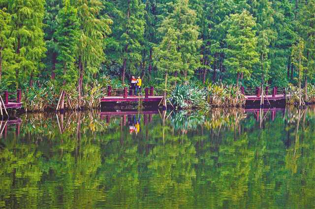 九龍坡區(qū)彩云湖國(guó)家濕地公園,青山綠水相伴,散步其中讓人陶醉。記者 鄭宇 攝