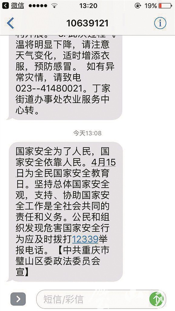 利用突發(fā)事件預(yù)警信息發(fā)布平臺發(fā)布國家安全日宣傳短信近十四萬條