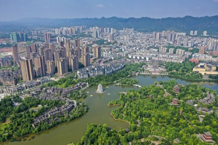↑這是7月10日無人機拍攝的重慶璧山秀湖國家濕地公園景色。新華社記者 劉潺 攝