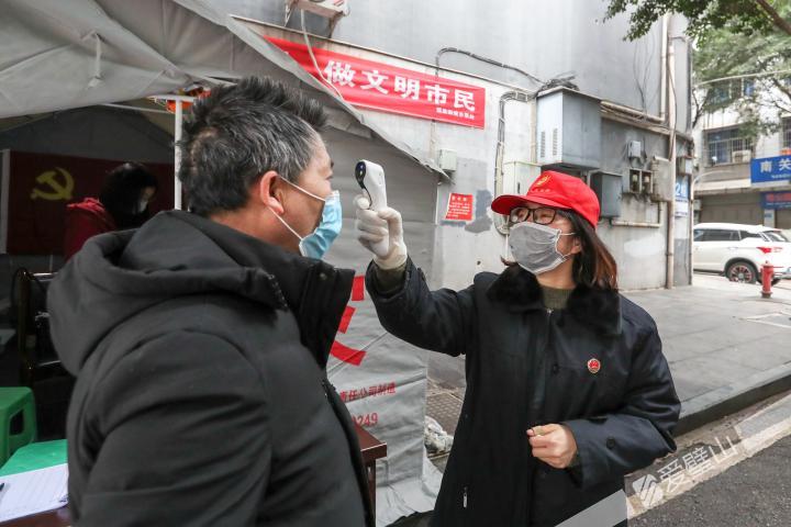 “居民朋友,請問你叫什么名字,家住幾棟、幾號,剛才外出干什么?”“老師請配合我們測量一下體溫。”“不好意思,快遞不能進入小區(qū),放在值守點,通知居民下樓來自取。”2月7日早上7點過,區(qū)檢察院干警王璨便來到璧泉街道南關(guān)4路居民小區(qū),在值守卡點開始了一天的工作。