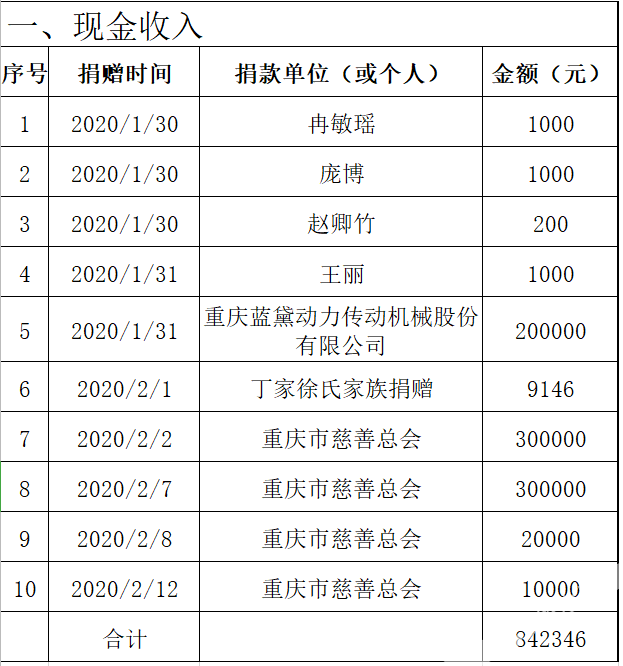 璧山區(qū)慈善會抗擊新冠肺炎捐贈資金收支匯總表
