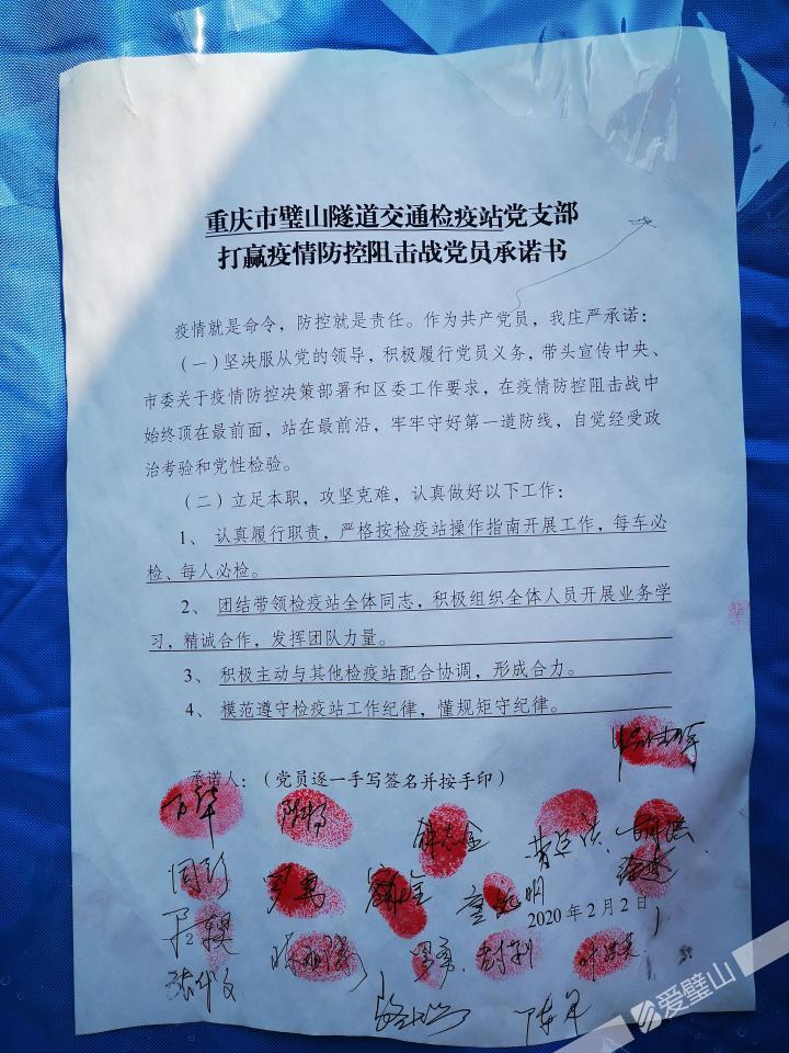 “認真履行職責,嚴格按檢疫站操作指南開展工作,每車必檢、每人必檢......”在檢疫站,記者看到了一張按滿手印的黨員承諾書。萬華告訴記者,臨時黨支部成立后,黨員們不僅把身份亮出來,把承諾亮出來,更把責任和使命體現在了每一天的工作中。
