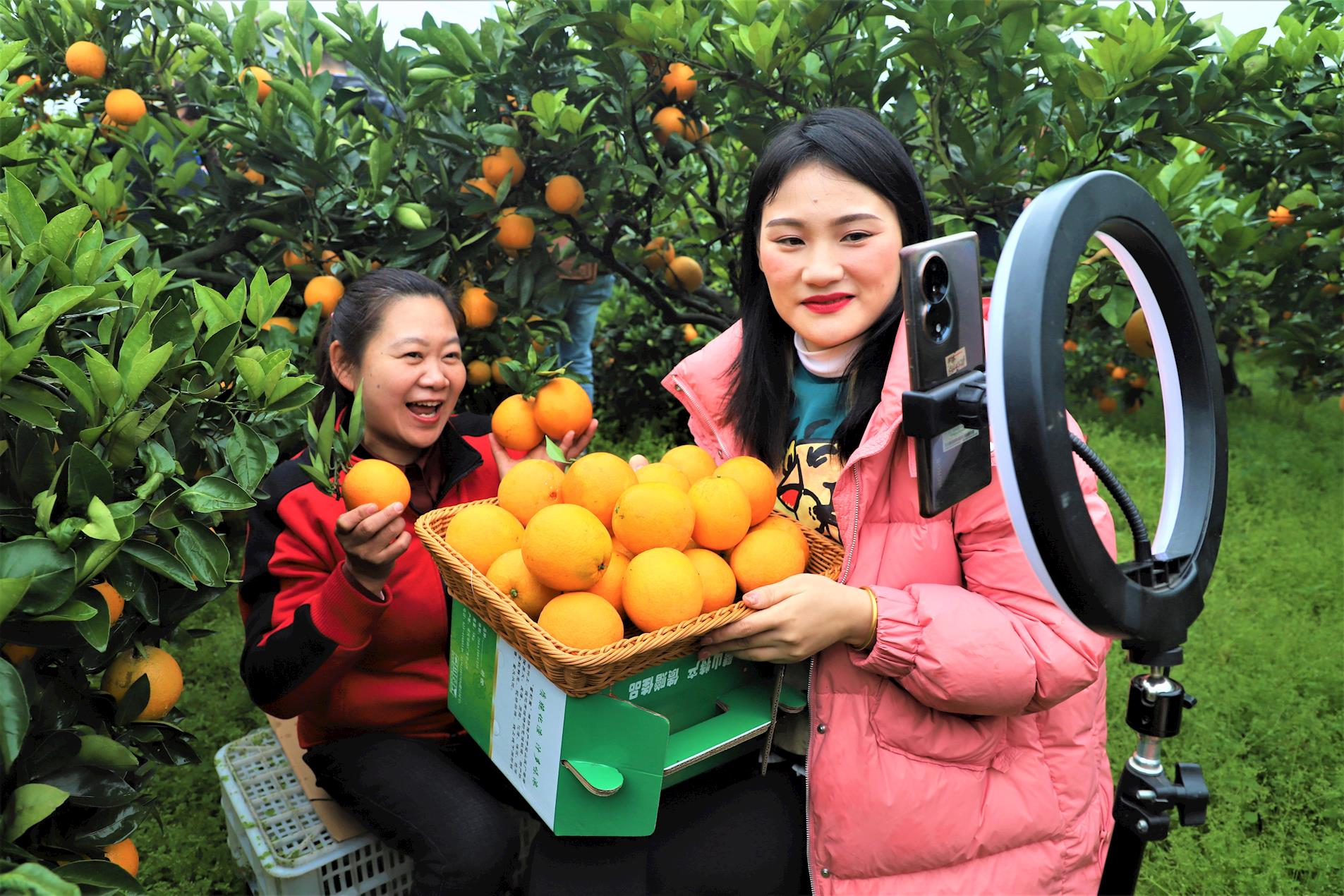 這邊的主舞臺區活動熱鬧非凡,旁邊的臍橙林里也笑聲不斷。“我們的臍橙個頭圓潤飽滿,咬下去甘甜爆汁……”“尹大姐”“君魂梁班長”“鄉村小晴”等璧山網絡達人與消費者“隔空”互動,熱情地介紹著臍橙的品質、特點和生態環境,引得不少網友紛紛下單。