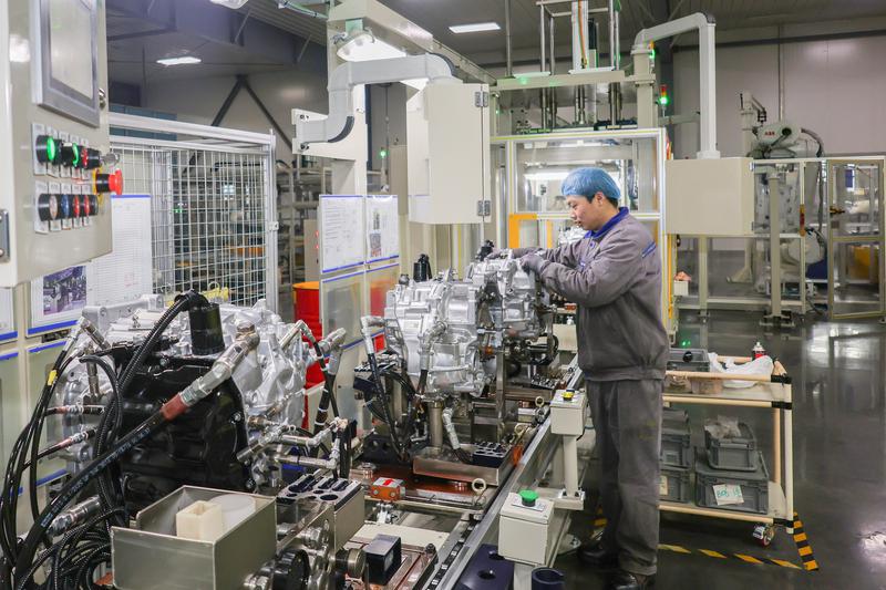 3月4日,藍黛科技公司,技術人員正在生產線上忙碌。今年,我區將著力實施智能網聯新能源汽車零部件產業發展倍增計劃,持續發力電池、電驅、電轉向、電制動、底盤、智能座艙等細分領域,投用比亞迪動力電池研究總院,建好中國長安璧山智能網聯低碳產業園,新培育百億級龍頭企業1家,力爭產值突破700億元。(記者 曾清龍 攝)