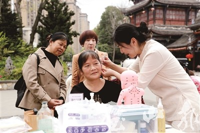 是日,來自區(qū)人民醫(yī)院的中醫(yī)專家和醫(yī)生現(xiàn)場坐診,通過“望聞問切”了解前來咨詢市民的身體狀況。與以往不同,此次義診還設置了多個互動體驗區(qū)。現(xiàn)場,群眾或爭相體驗耳穴壓豆、火熨術、刮痧等中醫(yī)特色療法;或跟隨醫(yī)護人員學習八段錦中醫(yī)養(yǎng)生操,掌握簡單易行的養(yǎng)生方法和技巧……同時,醫(yī)護人員還免費向過往群眾發(fā)放中藥香囊、派發(fā)中醫(yī)健康宣傳資料、宣講中醫(yī)藥健康知識。