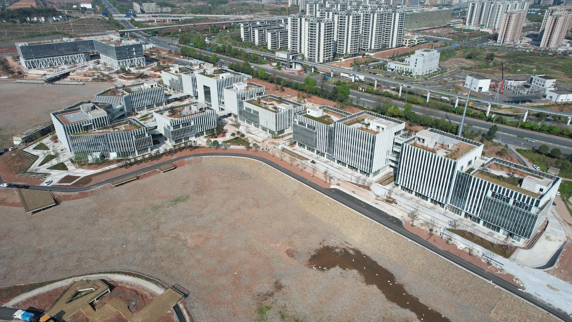 3月28日,鳥瞰中新生命科技城成果轉化中心全景。作為中新生命科技城項目核心工程,該成果轉化中心總投資8.4億元,占地82.98畝,建筑面積9.64萬平方米,包括中醫藥名醫名方轉化中心、高端醫療裝備研發中心、抗衰醫美產業中心及公共服務平臺。目前該中心主體工程已全部完工,正在進行周邊附屬設施建設。據介紹,中新生命科技城是在中新互聯互通項目框架下,規劃打造的中新重慶實體化合作重點項目之一,集生物技術研發孵化及成果轉化、中西醫藥生產制造、智慧醫學服務、康養休閑等多功能于一體。(記者  曾清龍  攝)