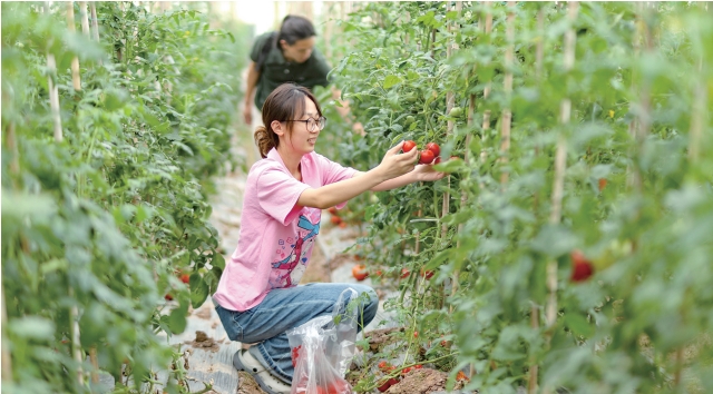 7月1日,七塘鎮(zhèn)番茄小鎮(zhèn),游客在蔬菜大棚內(nèi)采摘番茄?!拌瞪椒选本哂锌诟羞m中、抗逆性強、耐儲運等特點,突出表現(xiàn)為果型優(yōu)美、糖酸比高、風味濃郁、營養(yǎng)品質(zhì)優(yōu)異。近年來,我區(qū)通過出臺一系列扶持政策,統(tǒng)一制定入選標準、嚴格把控入選產(chǎn)品、加大推廣力度等,為區(qū)域農(nóng)特產(chǎn)品品牌建設賦能,其中新認證綠色食品23個、重慶名牌農(nóng)產(chǎn)品9個,“璧山葡萄”“璧山番茄”入選全國名特優(yōu)新農(nóng)產(chǎn)品名錄。