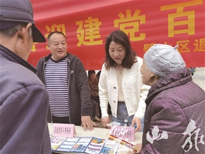 志愿者向群眾宣講退役軍人相關政策