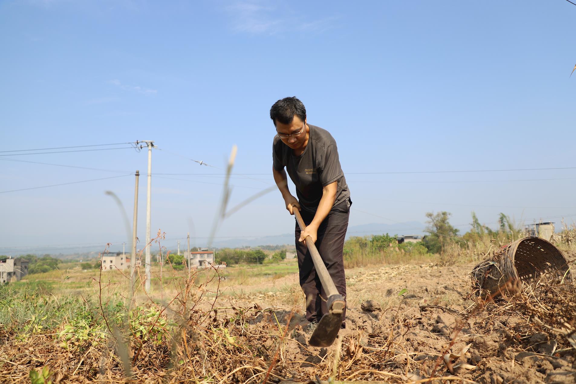 葉強的家在村里相對偏遠的位置,旁邊是一塊小田地,記者站在田埂邊,看著他熟練地揮舞著鋤頭,整理田里的作物。突然,手機鬧鐘響起,他迅速放下工具,擦了一把汗,快步跑回家中。記者緊隨其后小跑進門后,看到他正細心地為母親翻身、調整枕頭位置,然后輕聲安慰道:“媽,別急,我在這兒呢。”整個過程,他的動作都格外小心,生怕弄疼了母親。