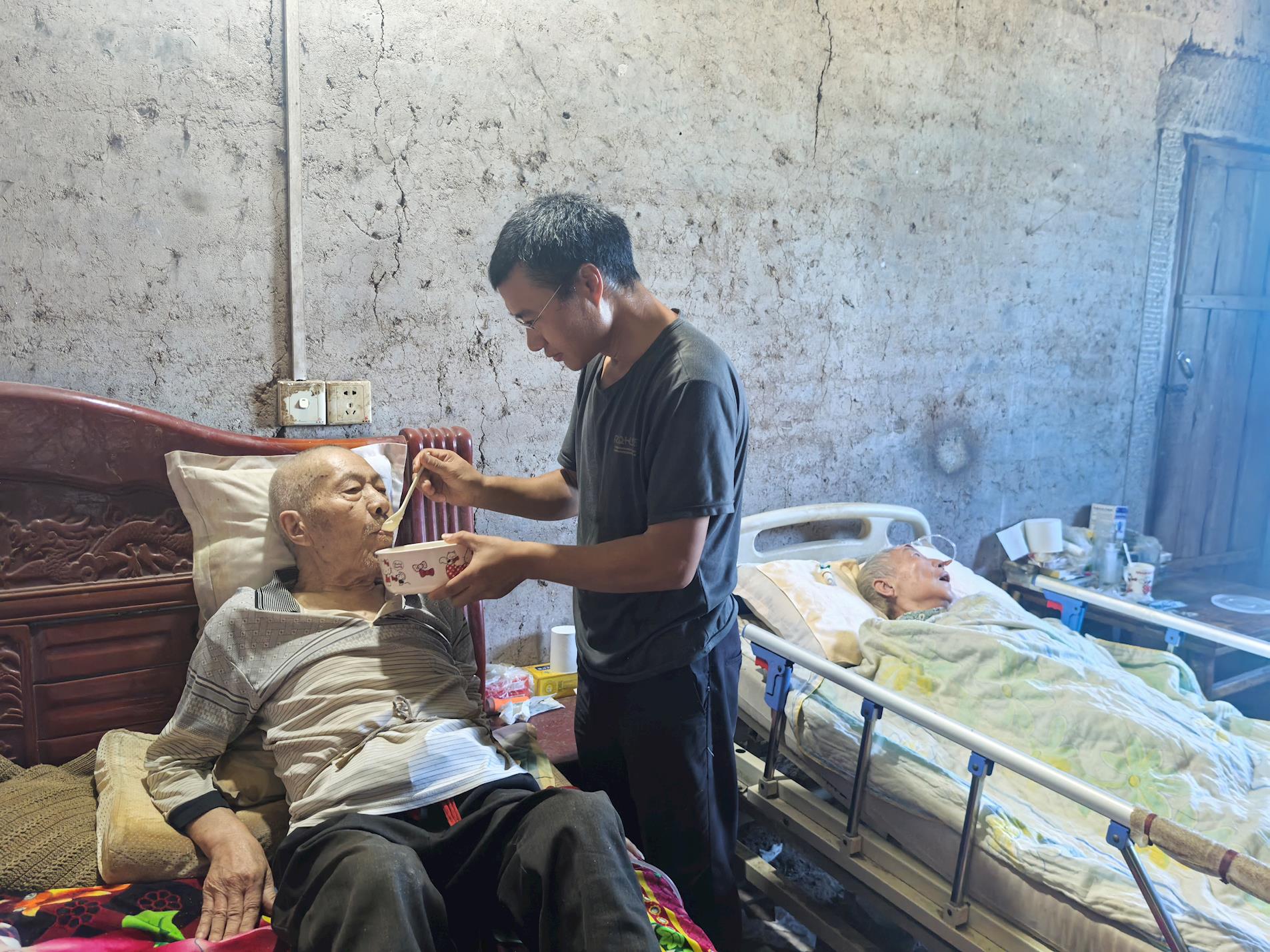 這樣的畫面,每天都會在這個普通的農村家庭里重復數次。七年來,葉強用自己的雙手和堅韌的心,悉心照料癱瘓在床的雙親,用行動詮釋了一名兒子的孝道與擔當。