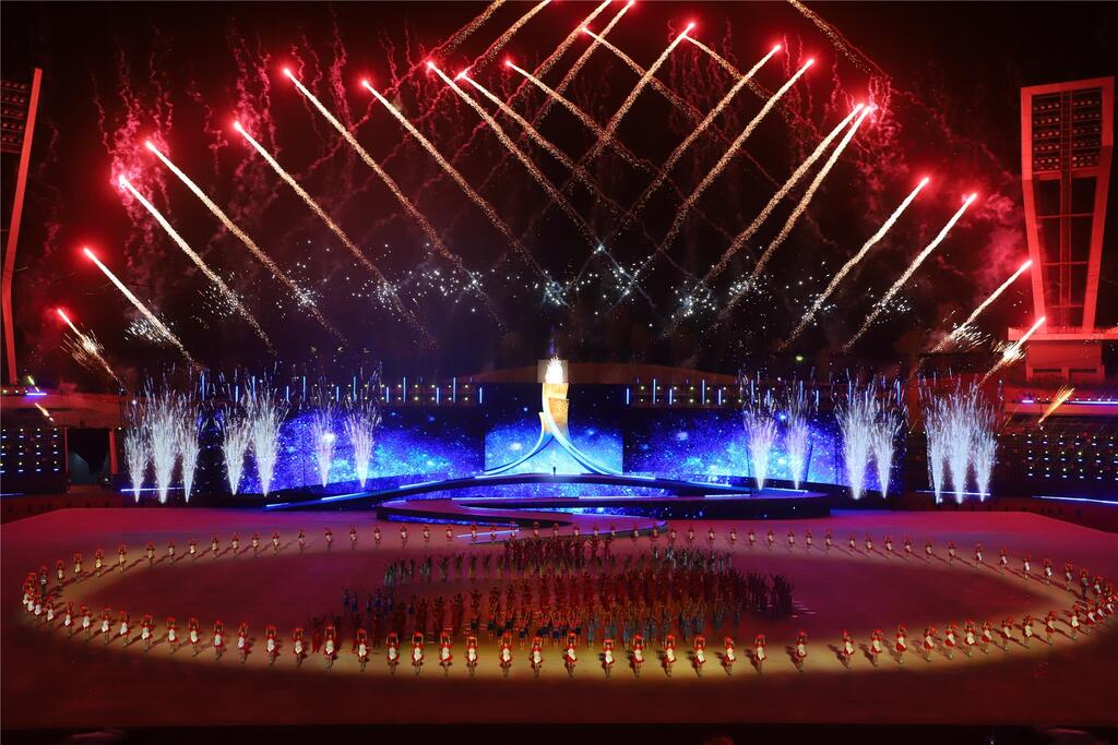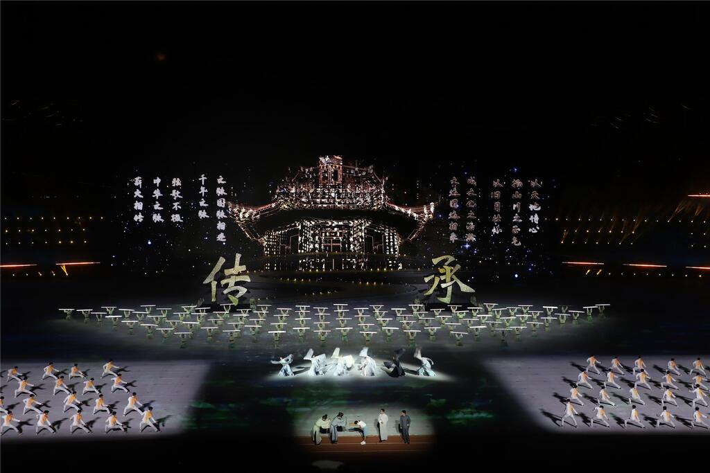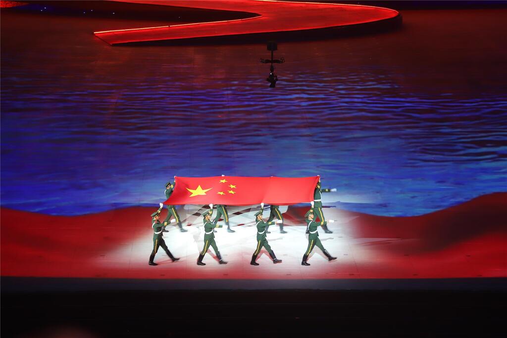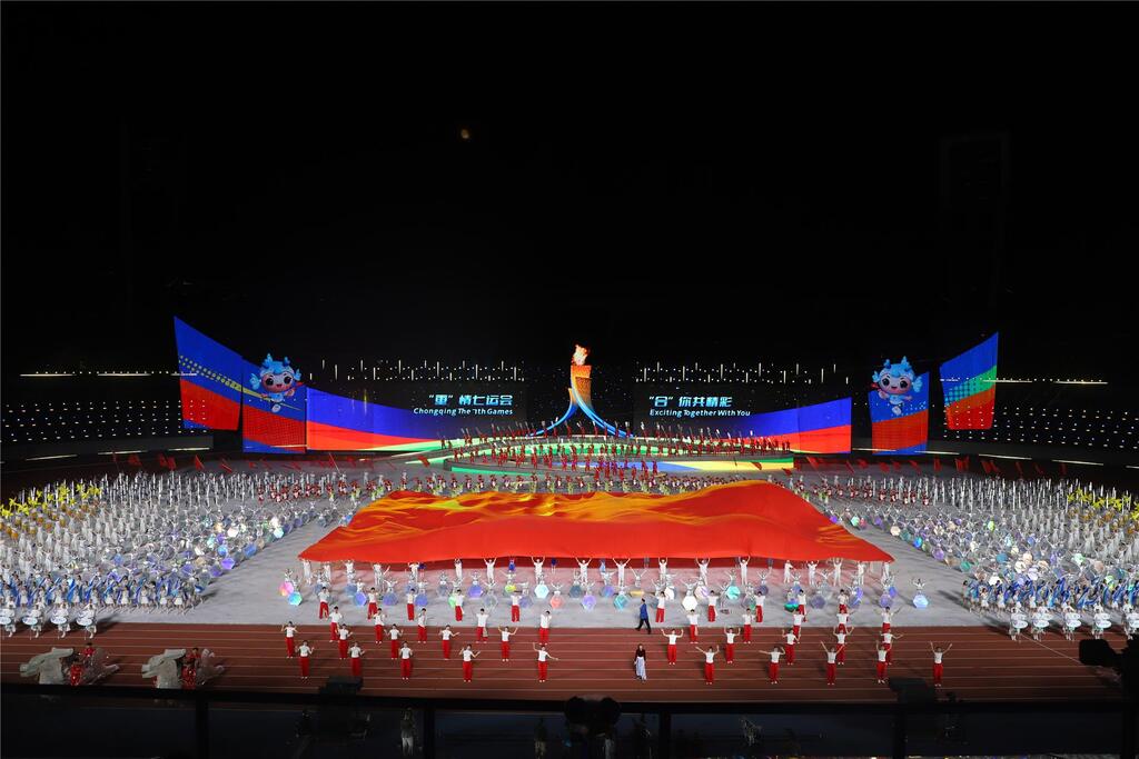 運動員、教練員、裁判員代表宣誓后,開幕式舉行了精彩的文藝展演和點火儀式。以“新時代、新征程、新重慶”為主題的文藝展演呈現出濃濃“巴渝風”和滿屏“合川味”。文藝展演以三川合流、山川與共、陸海連通、長江入海為脈絡,分為序篇《英雄城》、上篇《閱·山川》、中篇《越·陸海》、下篇《悅·生活》等版塊,突出時代性、場景感和數字化,將重慶與合川的歷史人文、精神傳承、綠色生態和時代發展進行創新融合。