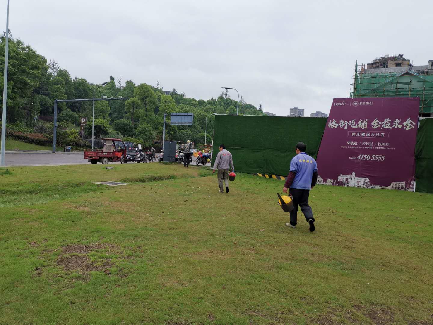 20200503黛山大道登云路口,工人抄近道踩踏綠化帶