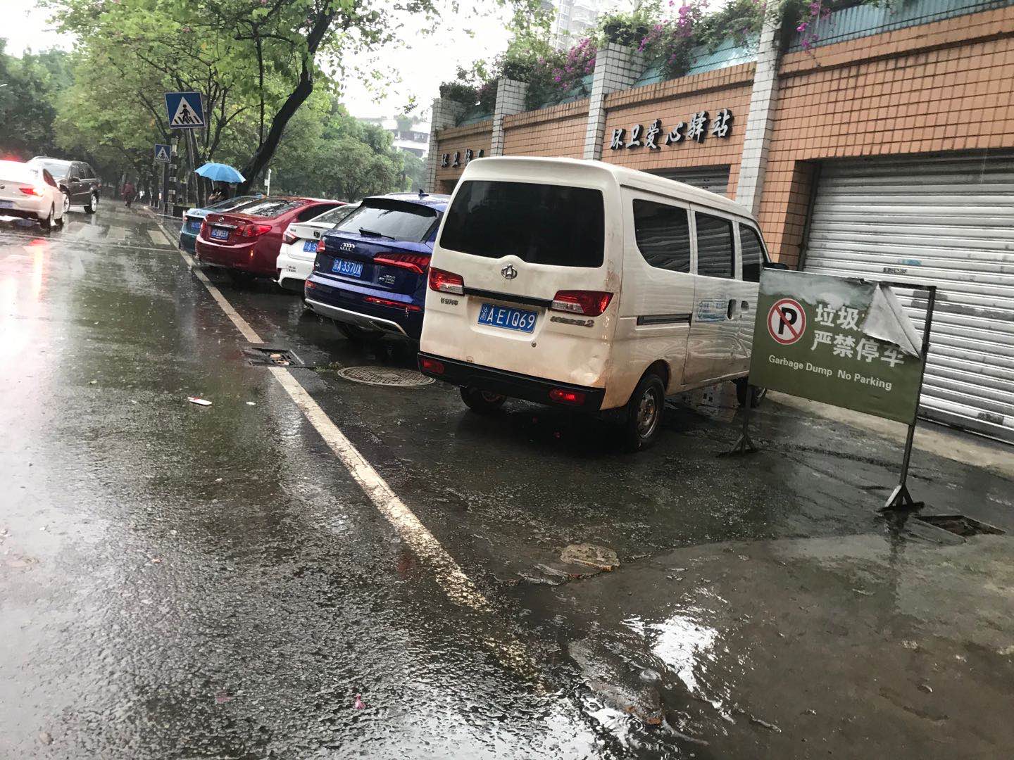 中山南路有幾輛小車停在圾垃站門前