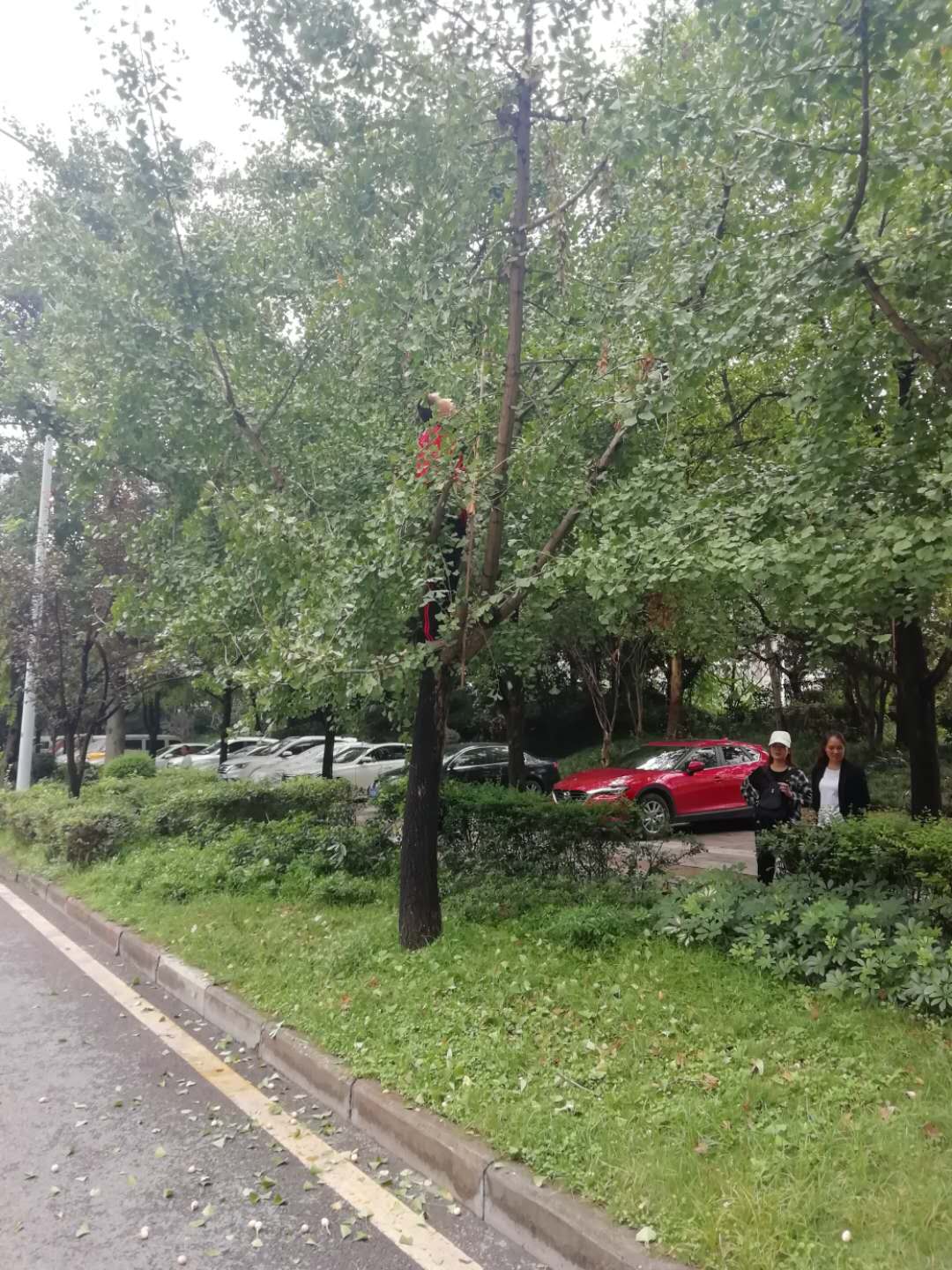 景山路夜晏KTV前,市民拿竹桿打百果