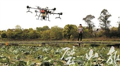 天氣轉暖,各色蔬菜田間管理進入關鍵時期。近日,在正興鎮團結村多家蔬菜種植基地,植保無人機來回穿梭、噴灑施藥,確保該村今年170余畝蔬菜豐產豐收。(記者 朱大亮 攝)