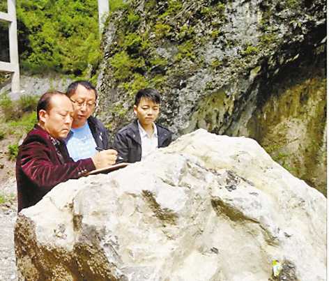 石頭為辦公桌,王華(左一)在記錄走訪貧困戶情況。(城口縣委宣傳部供圖)