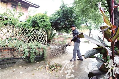“昨天晚上下了雨,樹葉掉得比較多,要及時清理,不然容易腐爛發臭,影響環境衛生。”清理完自家院子,張遠棋還將家門口公共區域的落葉打掃干凈,為附近村民出行提供便利。