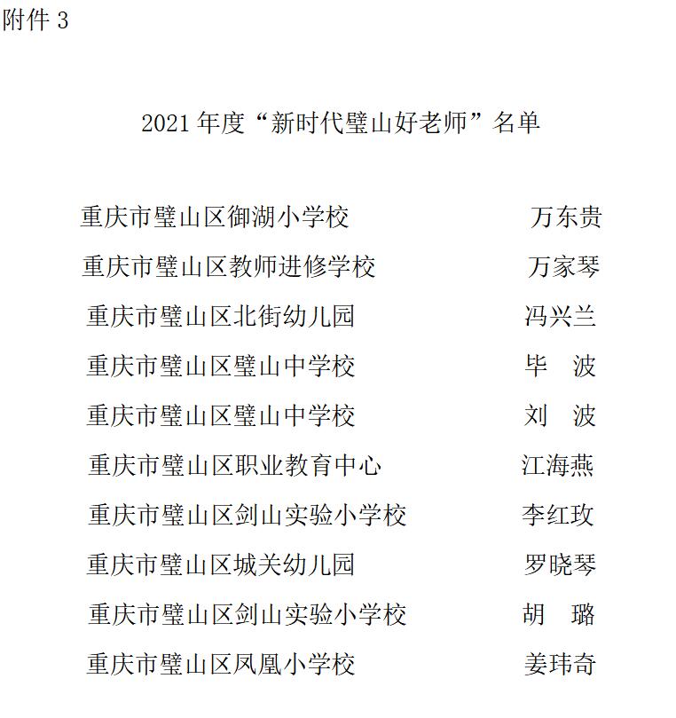 3. 2022年度“新時代璧山好老師”名單