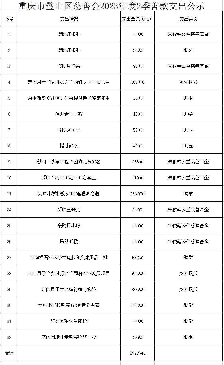 重慶市璧山區慈善會2023年度2季善款捐贈和支出公示