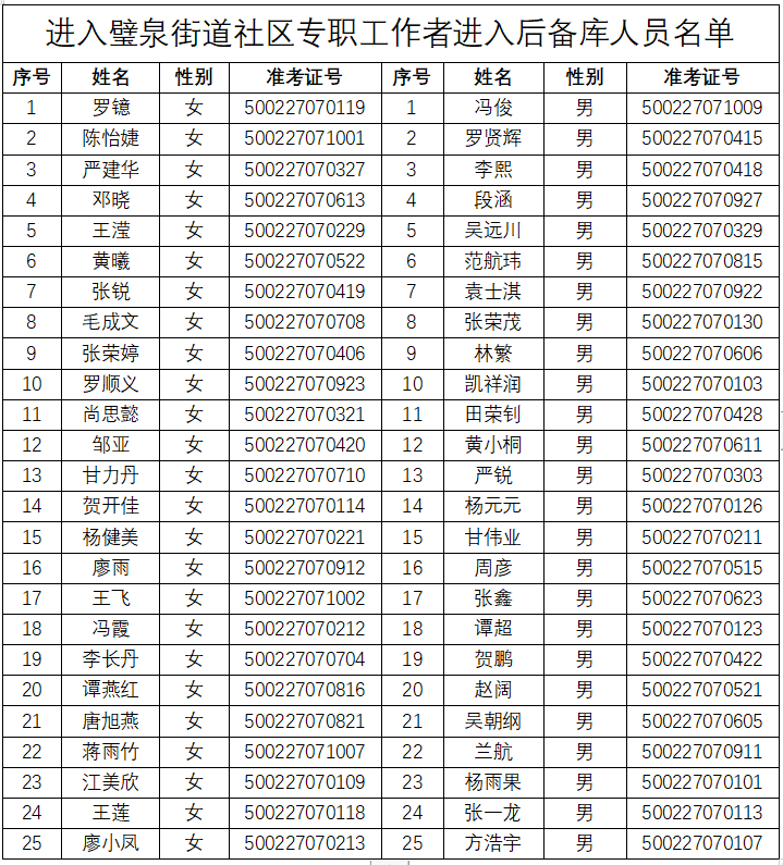 重慶市璧山區(qū)人民政府璧泉街道辦事處 關(guān)于2023年7月公開選拔社區(qū)專職工作者后備庫人選名單的公示
