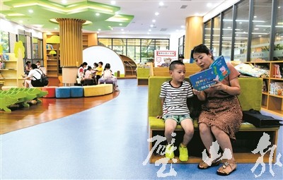 連日高溫,區圖書館(新館)成了不少市民消暑學習的好去處。讀者在館內既能讀書學習,又能消夏避暑,享受閱讀帶來的樂趣。(記者 王鋒 攝)