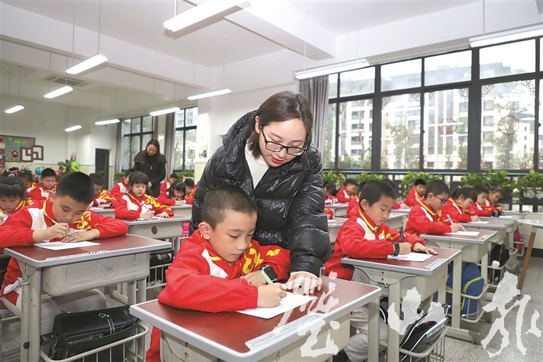 在三年級四班的教室里,同學們正在安靜地寫著作業,三位老師一面負責課堂紀律,一面針對學生作業中存在的問題進行輔導。“現在放學后,我就在學校把作業做完,遇到不懂的問題還可以問老師,做作業的效率也提高了。”該班學生胡宇恒一臉高興地說。