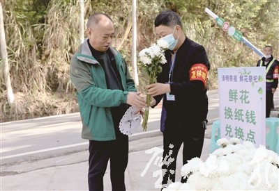 “用鮮花代替紙錢,既環保又有意義,明年我就不買紙錢了,直接買鮮花。”村民胡強林說。