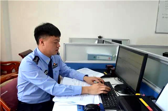 顏家軍正在錄入案件相關(guān)信息。單位供圖 華龍網(wǎng)發(fā)