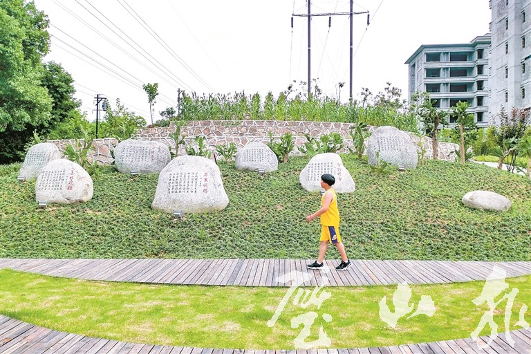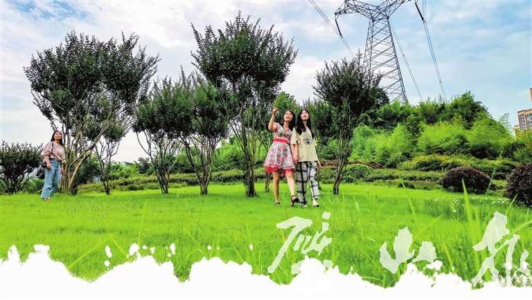 紫陌公園占地50余畝,充分利用高壓廊道下的城市邊角地修建,園內植物品種達到60余種,以水生植物、果樹和農作物為主要特色,布局有兩處荷塘、一處稻田和一處小型梯田,充分融入了“田園”文化,可讓市民在其中觀賞到鄉村美景。家住歐鵬鳳凰城的市民譚文剛就是其中的一位,他每天晚飯后都會帶著女兒到公園里走走,一邊散步游玩、一邊讓女兒學習認識農作物。