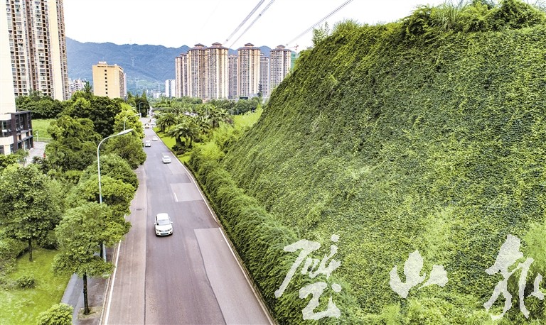 東林大道,經過綠化后的邊坡,儼然成為一景。