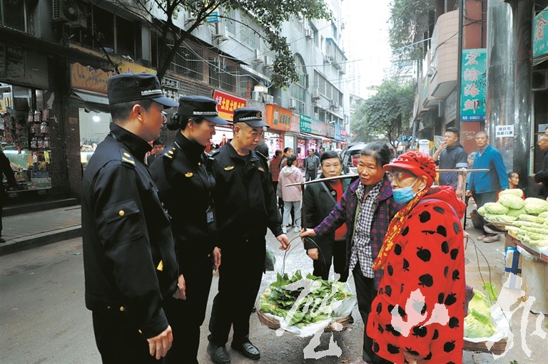 區(qū)城市管理局工作人員規(guī)勸游攤