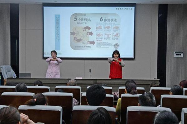 璧山區(qū)婦幼保健院針對(duì)特定群體和受眾,將愛(ài)國(guó)衛(wèi)生月宣傳內(nèi)容歸檔分類,以生活篇、營(yíng)養(yǎng)篇、母嬰篇、運(yùn)動(dòng)篇、健康衛(wèi)生小貼士等形式制作成海報(bào)、短視頻,在醫(yī)院人流較大的門診大廳、預(yù)防接種中心等地開(kāi)展宣傳。同時(shí),醫(yī)院還組織醫(yī)護(hù)人員開(kāi)展“健康衛(wèi)生進(jìn)學(xué)校”活動(dòng),分別走進(jìn)實(shí)驗(yàn)小學(xué)永嘉校區(qū)、伊頓、牛津幼兒園,開(kāi)展愛(ài)國(guó)衛(wèi)生知識(shí)宣講、發(fā)放宣傳資料和宣傳文化用品,現(xiàn)場(chǎng)示范教學(xué)六步洗手法、眼保健操等內(nèi)容。