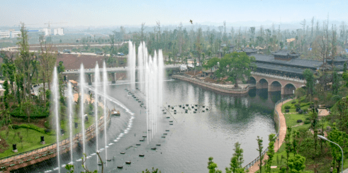 “公園+文化”:璧山區致力于歷史文脈修復、歷史文化故事挖掘整理。以巴渝文化為背景,在觀音塘公園內鋪放刻有璧山歷史文脈的文化景觀石3000余塊,融入“璧山古八景”、歷史畫廊、虎峰樓等園林仿古建筑60余座、近4萬平方米,并搭建百姓大舞臺、讀書臺等,豐富百姓文化生活。楓香湖兒童公園在1100米長的耕讀大街和耕讀巷子里,設置了“耕讀”場景墻,以壁畫的形式展示優秀傳統文化,同時借助體現農耕文化元素的糧倉式小賣部和風車、犁頭等農具實物展示農耕文化場景,充分彰顯了璧山地域文化特色。公園內還布局了以書院文化為主題的楓香里古建群,復建了當年國立社會教育學院、國立藝術??茖W校、國立音樂院等幾大學府的建筑景觀,再現了當時璧山縣城的文墨薈萃和風云際會。