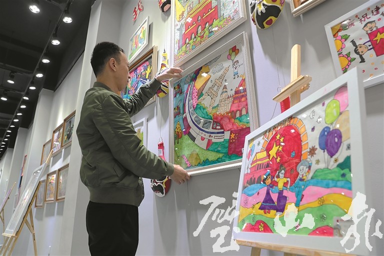 6月1日起,由區(qū)文化館主辦、璧山甲殼蟲創(chuàng)意美術(shù)中心承辦的慶祝新中國成立70周年兒童美術(shù)作品展將在區(qū)文化館展覽廳拉開帷幕。此次展覽將持續(xù)至6月30日,共有500余幅兒童美術(shù)作品參展。(記者 劉暢 攝)