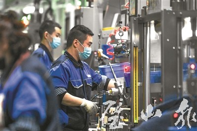 5月4日,璧山國家高新區一企業內,工人正在生產線上忙碌。疫情期間,為支持企業、穩定就業、促進經濟發展,我區相關職能部門積極優化業務流程、采取有效措施,及時紓解企業資金壓力,助力企業復工復產。今年一季度全區共計發放企業穩崗返還補貼資金2418.8萬元,幫助81家困難企業有序復工復產,穩定企業職工5293人。(記者 曾清龍 攝)