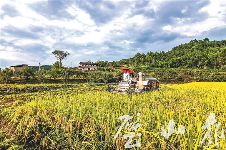 8月17日,大興鎮船形村,收割機在稻香四溢的稻田里奏響了豐收的樂章。目前,我區21萬余畝水稻已陸續進入成熟期,農民正搶抓有利天氣加緊收割,確保顆粒歸倉。