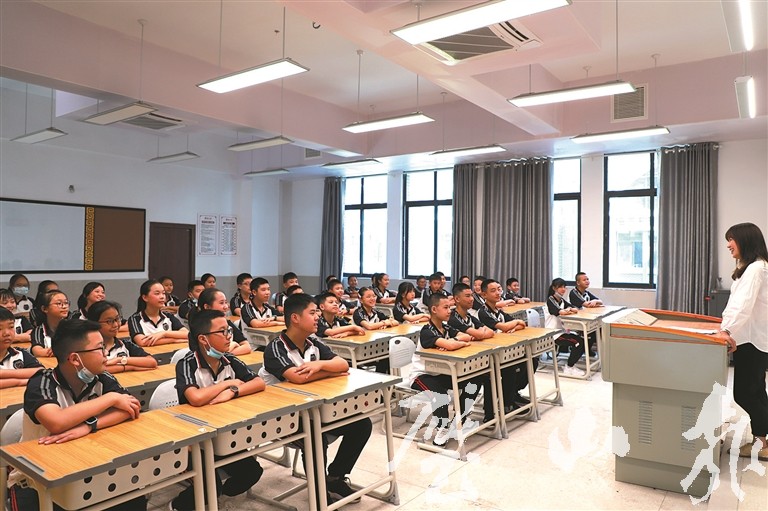 走進學校,只見一棟棟嶄新明亮的教學樓排列成行,食堂、運動場采用下沉式設計,并連通風雨操場讓學習生活無縫銜接,4000㎡的閱讀廣場和1400㎡的圖書館相輔相成,楓理念浮雕、“十美德”欄桿凸顯校園文化,教室內電子黑板、投影展臺、常態化錄播系統等現代化教學設備一應俱全,現代化的書香氣息撲面而來。