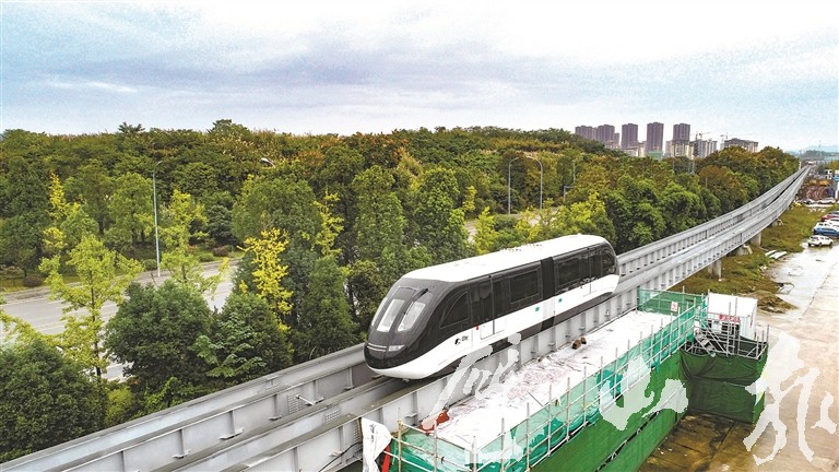 10月19日,楓香湖兒童公園段,“云巴”行駛在軌道上。據悉,“云巴”是比亞迪公司打造的具有獨立路權的小運量軌道交通系統,可與各條交通動脈進行有機連接,形成城市交通路網,有效解決城市短途和小運量出行,打通整個城市的“微循環”。我區“云巴”示范線全長15.4公里,共設車站15座,項目于去年8月開工建設,今年8月24日完成軌道鋪設工作。目前,該項目調試工作正有條不紊推進,預計12月投入運行。