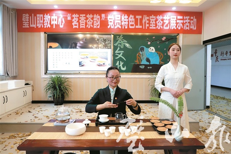 近日,璧山職教中心舉辦了一場茶藝展示活動,通過茶藝切磋與展示,進一步傳播我國茶文化的精髓,提升師生的綜合素質,讓師生從茶文化中學會愛、善和感恩,從而達到“以茶培德,以茶育人”的目的。圖為茶藝展示現場。